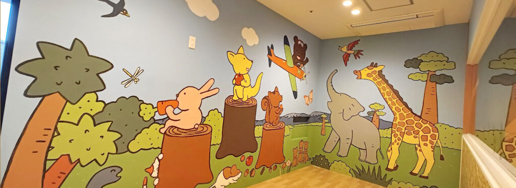 日比耳鼻咽喉科(名古屋市東区)内 親子ルーム壁面デザインとペインティング(LEVEL/三恵社)